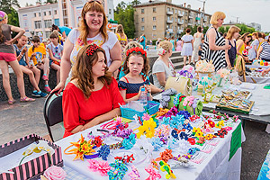 По территории площади Ленина на протяжении всего праздника для горожан было организовано: катание в карете, ярмарка изделий ручной работы от мастериц Снежинска, Челябинска и Москвы. Можно было полюбоваться и приобрести себе любое понравившееся изделие: ожерелье из бисера, ободок, украшенный цветами из холодного фарфора, серьги из часовых механизмов, свадебный букет из фоамирана и много другое. Авторские изделия были выполненные в разных техниках: канзаши, стим - панк, мокрое валяние, свит - дизайн, бисера, холодного фарфора.