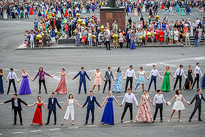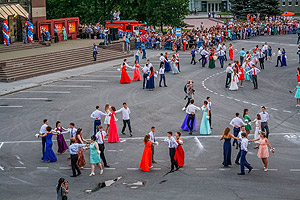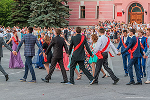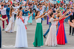 Кульминационным моментом торжественного вечера стал бал выпускников. Под волшебные звуки «Вальса цветов» Чайковского на площади кружились пары, и на руке у каждой девушки была прикреплена бутоньерка.