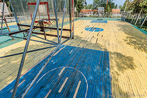 На 2017 год у нас запланирована замена покрытия площадки на более современное. Хотелось бы перейти на наливную резину. Она используется круглогодично, проще в обслуживании».