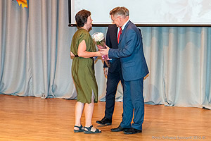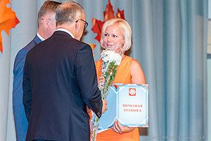 Конференция продолжилась серией докладов, открыла которую начальник Управления образования Марина Александрова. Ряд педагогических работников был награждён Почётными грамотами и Благодарностями. Кроме того, коллективу был представлен молодой специалист Лилия Сероус – потомственный педагог, бакалавр-отличник ЧГПУ по направлению физика и математика, а ныне – учитель 135 школы.