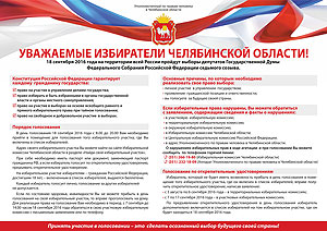 18 сентября 2016 года на территории Российской Федерации, в том числе и в Челябинской области, пройдут выборы депутатов Государственной Думы Федерального Собрания Российской Федерации седьмого созыва.