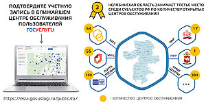 Сегодня Челябинская область находится на третьем месте среди субъектов России по количеству открытых центров обслуживания пользователей портала госуслуг. В регионе работают более 600 центров обслуживания. Помимо Почты России и Ростелекома, центры подтверждения были открыты во всех многофункциональных центрах области, включая территориально обособленные подразделения МФЦ в отдаленных районах региона, отделах ЗАГС, управлениях соцзащиты населения, территориальных управлениях Пенсионного фонда России, в МРЭО ГИБДД по Челябинской области и в других организациях. Найти ближайший центр можно на карте (поиск осуществляется автоматически по местоположению человека).