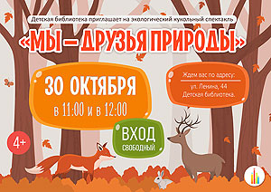 Детская библиотека и кукольный театр «Теремок» приглашают на экологический кукольный спектакль «Мы – друзья природы».