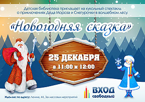 Вас ждут 25 декабря в зале массовых мероприятий Детской библиотеки, начало сеансов в 11:00 и в 12:00.