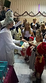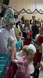 120 детей в красочных карнавальных костюмах побывали на новогоднем празднике, стали активными участниками представления со сказочными героями, Дедом Морозом и Снегурочкой, анимационными ростовыми куклами героев мультфильмов, водили хоровод вокруг новогодней красавицы Ёлки, играли в игры.