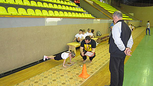 Это была первая и не последняя встреча. На данном этапе были выполнены такие упражнения, как прыжки в длину с места, наклон вперед, сгибание и разгибание рук в упоре лежа на полу и челночный бег. В ближайшем будущем: метание теннисного мяча, смешанное передвижение.