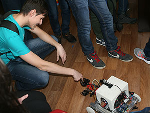 Преподаватели и специалисты снежинского физтеха познакомили гостей с оснащением Центра аддитивных и лазерных технологий вуза, лабораторной и научной базой СФТИ НИЯУ МИФИ. Ребята из студенческого конструкторского бюро по робототехнике представили новые возможности применения компьютерного зрения и гироскопического манипулятора у прославившегося на всю страну победой в Роботлоне-2016 «БАРСиКа» (боевой автономной роботизированной системы).