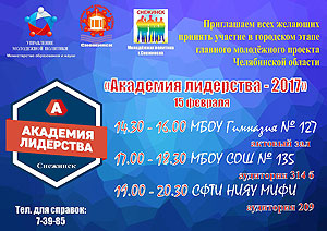 Академия лидерства-2017 Приглашаем всех желающих принять участие в городском этапе главного молодёжного проекта Челябинской области. 10-02-2017