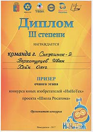 3 место – Иван Верхотурцев, Олег Хейн, г. Снежинск.