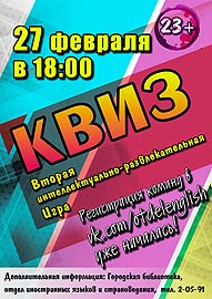 Умники и умницы города Снежинска! Очередная игра КВИЗ на подходе (27 февраля в 18.00). Соберите команду друзей, захватите с собой хорошее настроение и приходите в городскую библиотеку. Отвечайте на интересные вопросы ведущего, заработайте максимальное количество очков и становитесь победителем!