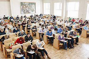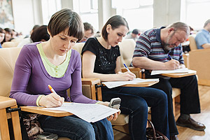 Диктант проходил на двух площадках: в помещении снежинского городского музея и на 1 этаже городской библиотеки. Всем, кто желал принять участие в акции, нашлось место. Диктовали текст филологи: Светлана Станиславовна Грицкова, в прошлом учитель русского языка и литературы, и Лариса Владимировна Герасимова, учитель русского языка и литературы шк. № 126.