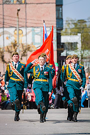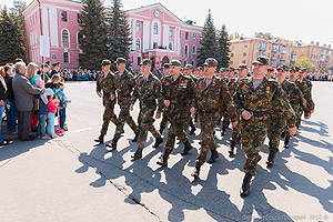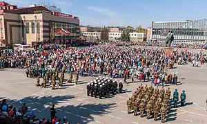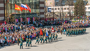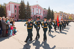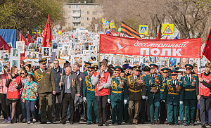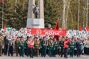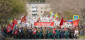 Традиционно сбор полка прошел на площади Победы, за полчаса до торжественного шествия. Участники акции возложили цветы к памятнику Солдату-победителю, Стене славы и Вечному огню, четко и организованно построили колонну, прошли по улицам Победы и Васильева, по бульвару Свердлова до главной площади города. Здесь они вместе со своими военными героями стали главными участниками митинга, посвященного 72-й годовщине Победы в Великой Отечественной войне.