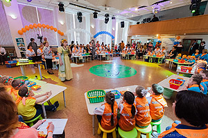 Открытие события состоялось в театральном зале, старт строительству города фантазий дали известные и любимые детьми сказочные герои Крокодил Гена, Чебурашка, девочка Галя и клоун Рыжий Ап. Прямо на сцене каждая команда заложила символический цветной кирпичик, а руководители города и градообразующего предприятия разрезали ленточку, выразив уверенность – городу детских фантазий быть!