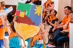 Второй день образовательного события вновь начался с сюрприза. Участникам события было предложено разработать гербы созданных накануне районов. Каждая команда разрабатывала герб соседнего района, а затем торжественно дарила его команде-строителю. Такое задание стало неожиданностью для взрослых, но дети прекрасно справились с задачей, проявив свои коммуникативные навыки. Они советовались, договаривались и находили нужное решение. У всех районов появились красочные гербы. Был создан и герб «Города наших фантазий».