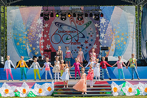 Предлагаем вашему вниманию фоторепортаж с детского концерта «Улыбки радости», который прошёл на главной сцене праздника 60-летия города Снежинска. В это же время на различных площадках стадиона была организована игровая программа «С Днем рождения, любимый город!»с конкурсами и подвижными играми. В играх приняли участие более 700 юных снежинцев. Аниматорами выступили участники детской театральной студии «Одуванчик».