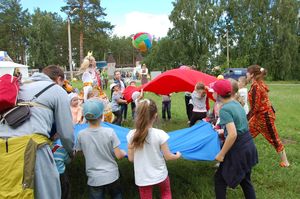 В 10.00 на «Зеленую поляну» парка вышла первая команда участников, коллектив из г. Сосновый Бор (Ленинградская область), с игровой программой «Средневековье». Следом выступили гости из г. Курчатов (Курская область), представив программу «Пираты в поисках сокровищ». Под счастливым третьим номером детей порадовала команда Снежинска, затеяв игру «День семьи, любви и верности». Далее эстафетная палочка перешла городу Лесной (Свердловская область). Четвертая команда подготовила программу со спортивным уклоном. Завершили первую часть Фестиваля специалисты г. Новоуральск (Свердловская область) с игрой «Отважный капитан».