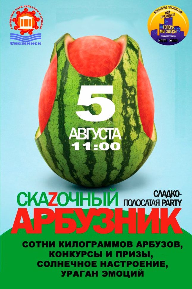 5 августа Парк культуры и отдыха приглашает всех жителей на самый сочный праздник лета – День арбуза. В 11:00 на Зеленой поляне парка начнется увлекательная игровая программа для малышей. Взрослых ждут конкурсы с арбузами на малой сцене. Горожане узнают, кто из снежинцев лучше всех выбирает спелые арбузы и кто больше всех может съесть сочное лакомство. Гвоздем программы станет эксперимент «Арбуз Challenge».