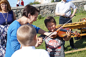 Мастер-класс «Знакомство с музыкальными инструментами» стал настоящим праздником для детей и родителей. Снежинские школьники могли не только послушать, как звучат инструменты в руках преподавателей. Дети сами пробовали играть на скрипке, синтезаторе, домре, баяне.
