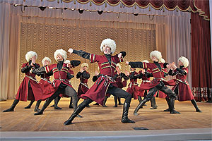 В программе – танцы народов Кавказа в сопровождении оркестра народных инструментов.