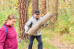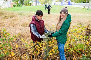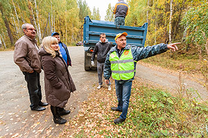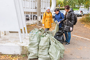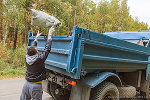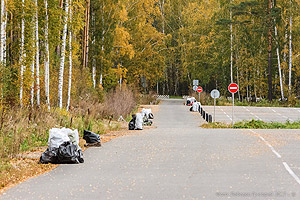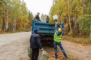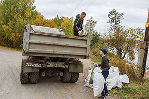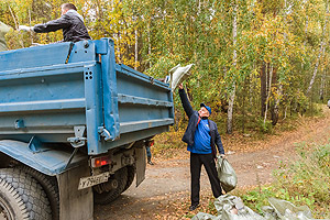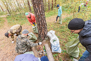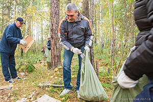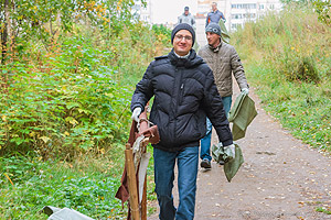 В рамках экомарша по инициативе депутатов продолжилась начатая на субботнике в августе очистка километровой кроссовой трассы возле стадиона им. Гагарина. Распиленный заранее сухостой грузили в тракторный прицеп и вывозили. Вместе с этим шла уборка лесного массива от пустых бутылок, пакетов и прочего мусора.