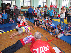 Все участники справились с поставленными перед ними задачами и выполнили упражнения достойно, приложив массу усилий, силу воли, спортивный характер. Победители и призёры соревнований были награждены памятными подарками, грамотами, все участники получили сладкий приз. В соревнованиях приняли участие 77 мальчиков, 53 девочки, зрителей – 220 человек.