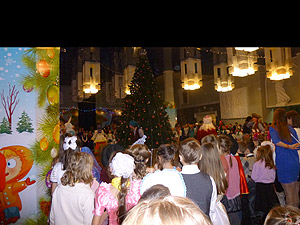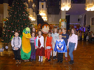 Закончился праздник хороводом вокруг елки с участием героев спектакля, Деда Мороза и Снегурочки. Ребята поучаствовали в конкурсах и играх, получили подарки от Деда Мороза и с зарядом бодрости и веселья вернулись домой.