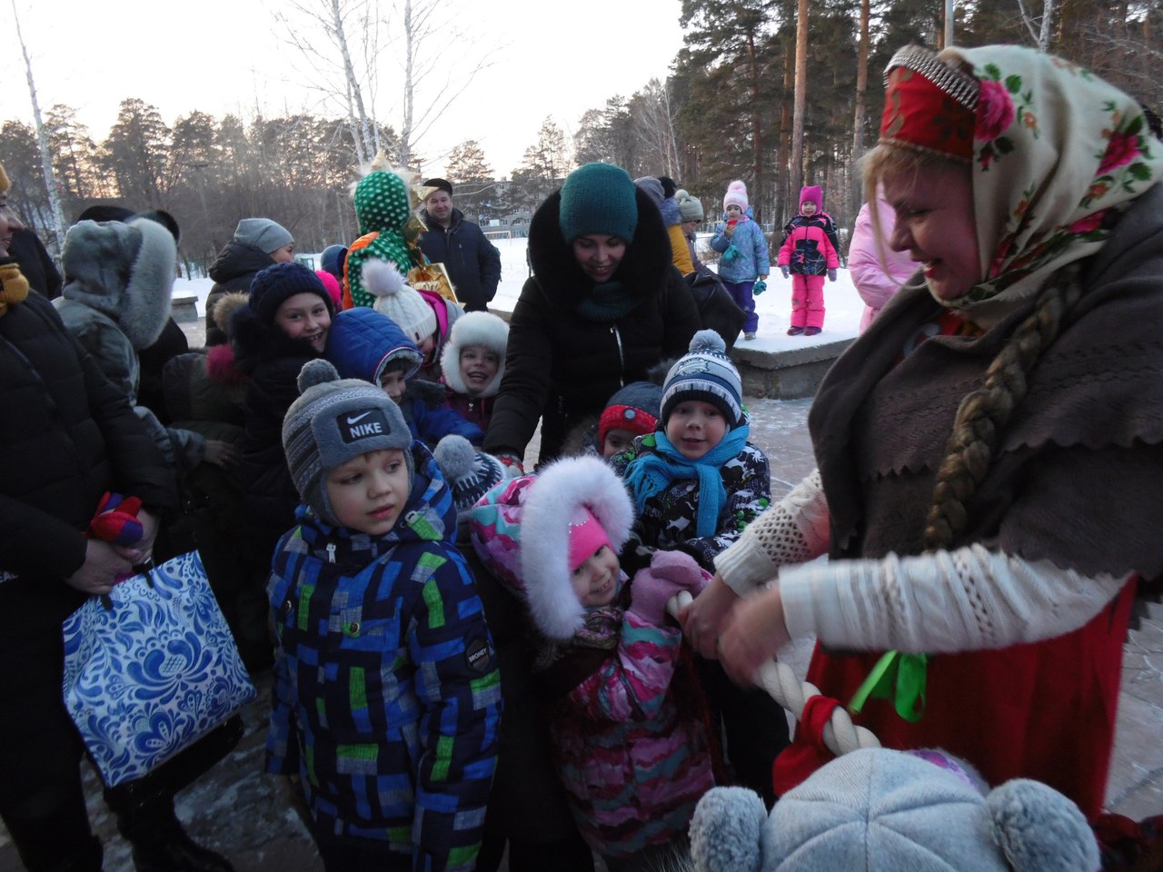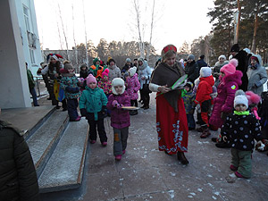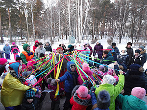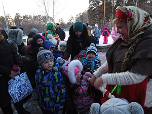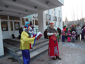 Для всех гостей на площадке перед библиотекой был показан интерактивный спектакль, где дети вместе с весёлым снеговиком, скоморохами и самой Масленицей состязались в ловкости и сообразительности, перетягивали канат, водили хоровод и встречали весну.