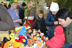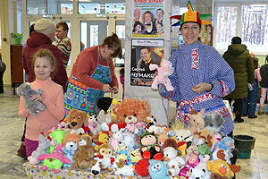 А потом всех пригласили на саму ярмарку, которая проходила в фойе первого этажа Детской библиотеки. Здесь можно было увидеть и приобрести: самодельные игрушки, картины, написанные маслом, подушки и думки, сшитые ребятами из Каслинского детского дома. Были представлены изделия из фетра, украшения из кружева, расписные санки и доски. И, конечно, было много выпечки и блинов на любой вкус и размер.