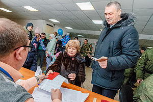 Глава города Снежинска Игорь Ильич Сапрыкин: «День действительно праздничный. У меня он начался с того, что утром я позвонил в Крым главе города-побратима Щёлкино Сергею Николаевичу Варавину, поздравил его с годовщиной воссоединения Крыма с Россией. Кроме того, сегодня у нас отмечается ещё один праздник – День работников жилищно-коммунального хозяйства, и я поздравляю всех, кто сегодня выполняет весь фронт работ, чистит и убирает город, чтобы в том числе обеспечить в снегопад удобство для избирателей. И конечно, самый главный праздник – это выборы президента. Важно, чтобы наша городская общественность проявила свою политическую сознательность и пришла на выборы».