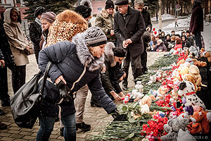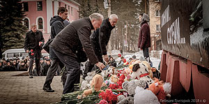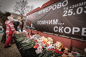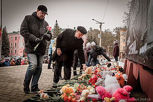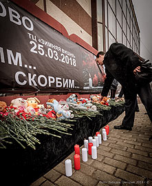 Сегодня в Снежинске проводится акция «Кемерово, мы с тобой!». У крыльца ДК «Октябрь» с 10:00 до 20:00 развёрнут временный мемориал. Горожане несут цветы, игрушки, свечи, чтобы почтить память жертв трагедии.
