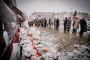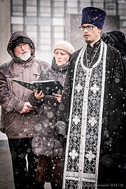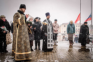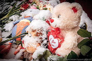Сегодня днём у временного мемориала состоялась панихида по погибшим в кемеровском торгово-развлекательном центре «Зимняя вишня». Панихиду по жертвам трагедии совершили священнослужители храма в честь иконы Божией Матери «Державная» г. Снежинска иерей Павел Беспалов и диакон Иоанн Грыгораш. Можно подать записки об упокоении усопших и в самом храме, где в ближайшие 40 дней ежедневно будут молиться о душах новопреставленных и утешении скорбящих.