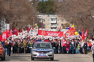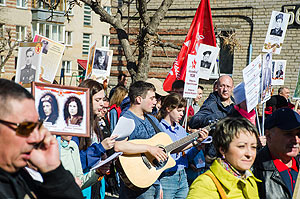 Звучит музыка, где-то играет гитара, где-то – гармонь, люди поют, вспоминают погибших родных, кто-то идёт молча, погрузившись в воспоминания... У школы № 126 участников шествия приветствует выстроившийся по струночке кадетский класс.