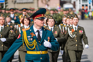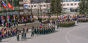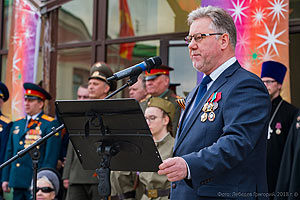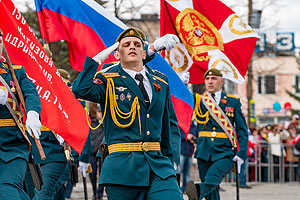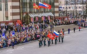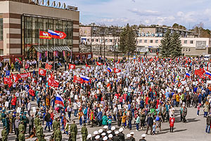 Пронзительные моменты митинга – стихи, цветы, свечи, слова благодарности ветеранам и дружное многоголосное многотысячное «Ура!», слёзы, радость и гордость одновременно. Лучшие голоса Снежинска: Татьяна Мушенок, Владимир Яровой, Александр Цепилов, а также вокалисты 125-й школы исполняют песню «Течёт река бессмертного полка». Завершает праздник военный парад со знаменем Победы, плац-концерт великолепного оркестра войсковой части и строевая песня, слова которой «Этот День Победы порохом пропах» отпечатаны у каждого в сердце. С особым чувством каждый раз встречают 9 Мая в Снежинске – городе, построенном после той войны с целью, чтобы войны никогда больше не было. Это – наша Победа.