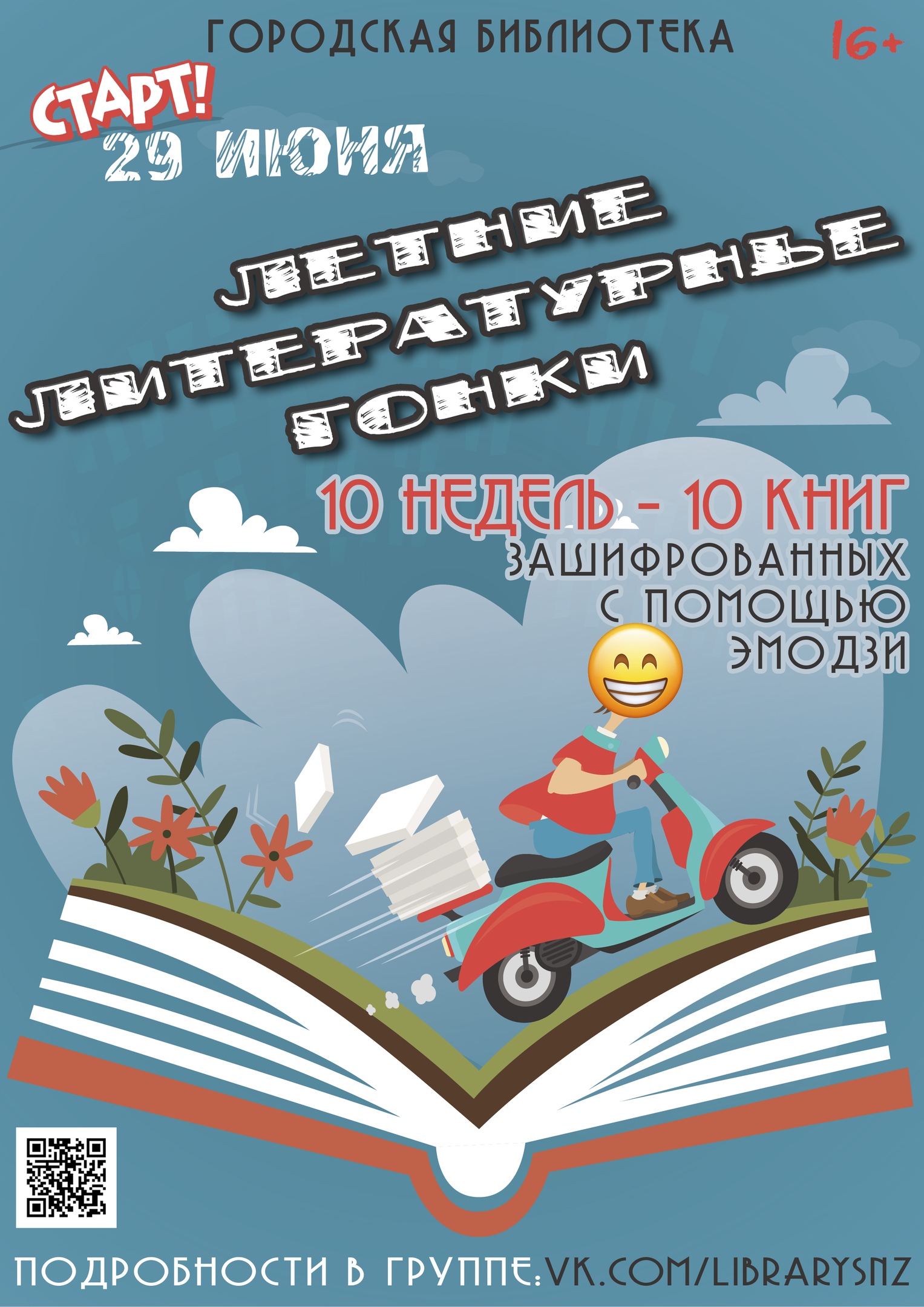 Уже через неделю, 29 июня, в 18:00, стартуем в группе городской библиотеки Снежинска Вконтакте vk.com/librarysnz. Условия просты: 10 недель — 10 книг, зашифрованных с помощью эмодзи (эмодзи – язык идеограмм и смайликов, используемый в электронных сообщениях и веб-страницах). Каждую пятницу, с 29 июня по 31 августа, в 18:00, мы будем публиковать одну зашифрованную книгу.