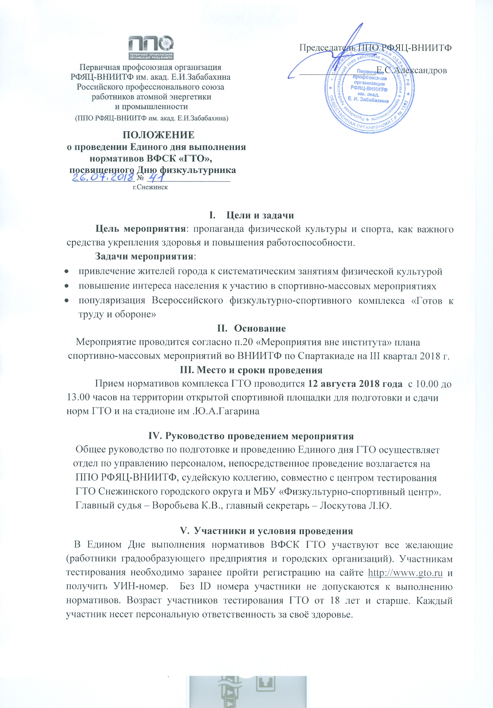 12 августа в честь Дня Физкультурника пройдет ставший уже ежегодным Единый день сдачи норм ГТО. Для участия необходимо иметь при себе УИН (получить его можно при регистрации на сайте гто.ру) и хорошее настроение!