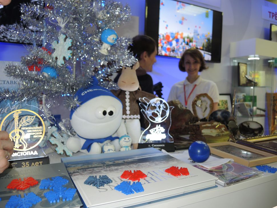 На площадке стендов городов присутствия ЯОК представители Снежинска оформили витрину и вручали гостям небольшие подарки. Помимо видеофильма с зарисовками города, который демонстрировался на экране, вниманию посетителей были представлены буклеты, сувенирная продукция, мягкие игрушки и не только. Большой популярностью пользовалась статуэтка «Снежик-космонавт», созданная после того как Герой России Олег Артемьев взял неофициальный символ города на борт пилотируемого корабля в качестве индикатора невесомости. Как отметил в своем выступлении глава города Снежинска И.И. Сапрыкин, при подготовке к этому дню все работали единой командой.