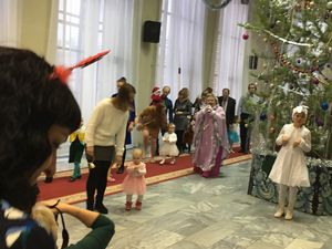 Игры, танцы, песни вокруг елки создавали праздничное настроения и у малышей, и у родителей. Все ребятишки получили в подарок от Дедушки Мороза мягкую игрушку. Счастливые и довольные маленькие снежинцы фотографировались у елки со сказочными героями.