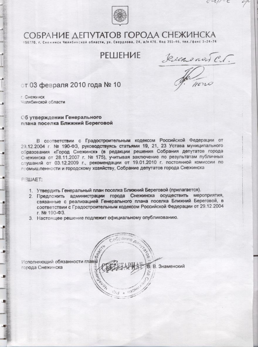 Настоящий генеральный план составлен на основе современных принципов градостроительства с учетом природно-экономических особенностей поселка Ближний Береговой и всего Снежинского городского округа.