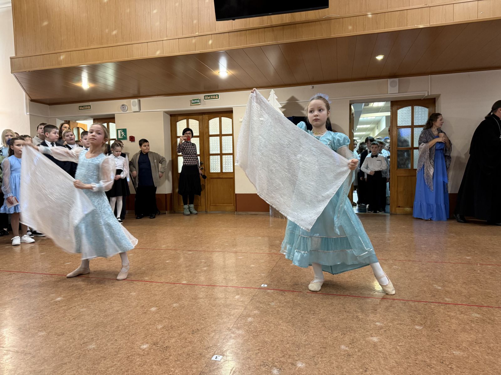 Перед началом спектакля в фойе второго этажа воспитанниками Воскресной школы Прихода храма иконы Божией Матери «Державная» было показано Вертепное кукольное представление с музыкальными и инструментальными номерами.