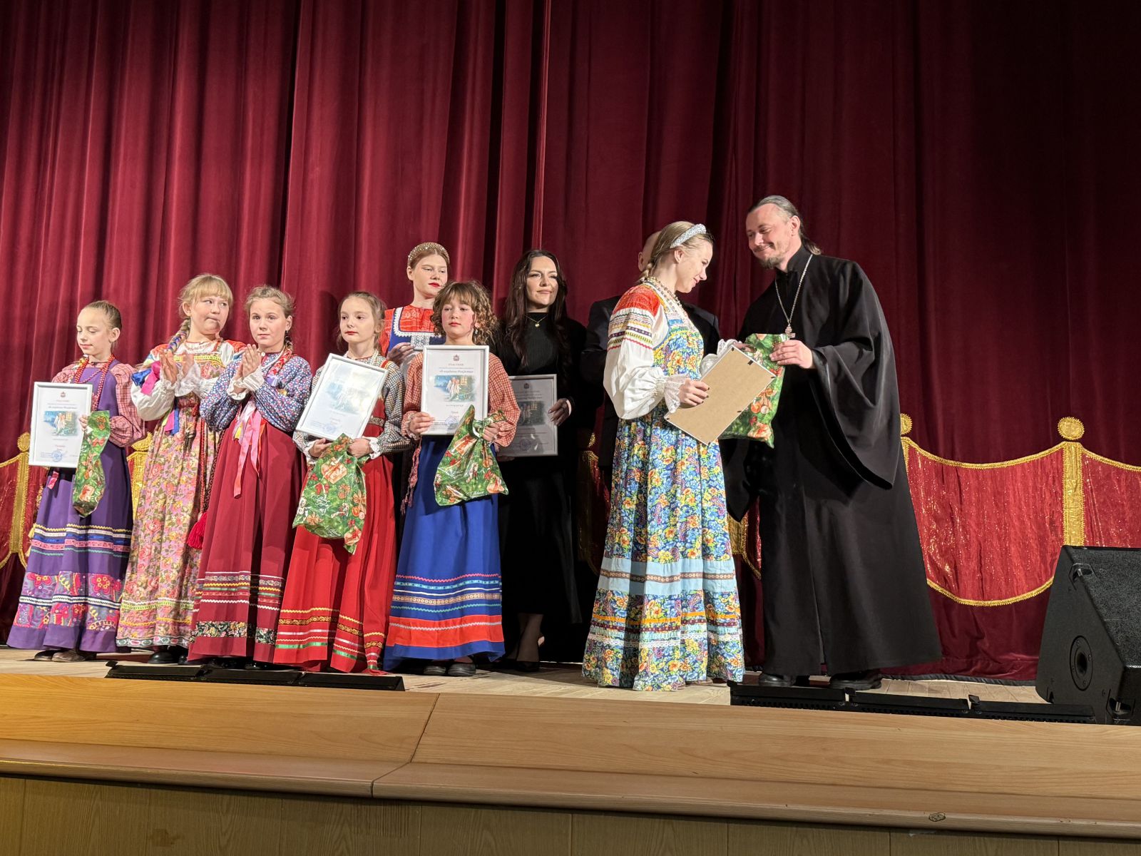 С приветственными рождественскими поздравлениями к ребятам обратился и настоятель прихода храма иконы Божьей матери «Державная» отец Павел. Вручили подарки и дипломы участникам муниципального этапа регионального конкурса творческих работ «Рождественская сказка», которыми стали: