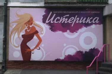 - Оформление баннера магазина «Истерика» на фасаде здания, расположенного по адресу: г. Снежинск, ул. Васильева, д. 6 (заявитель – О. Д. Ушакова).