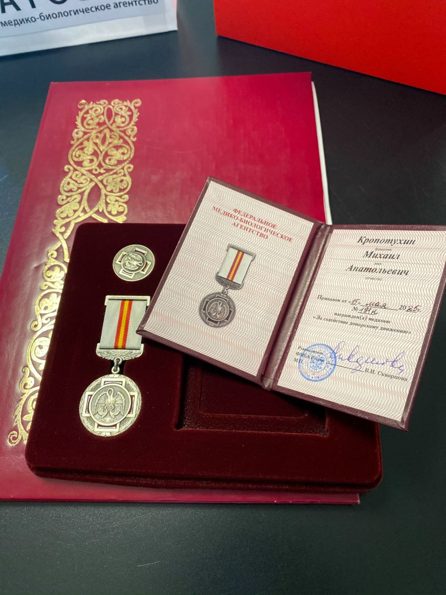наградить ведомственным знаком отличия Федерального медико-биологического агентства - медалью «За содействие донорскому движению» доноров клеток костного мозга:Кропотухина Михаила Анатольевича».
