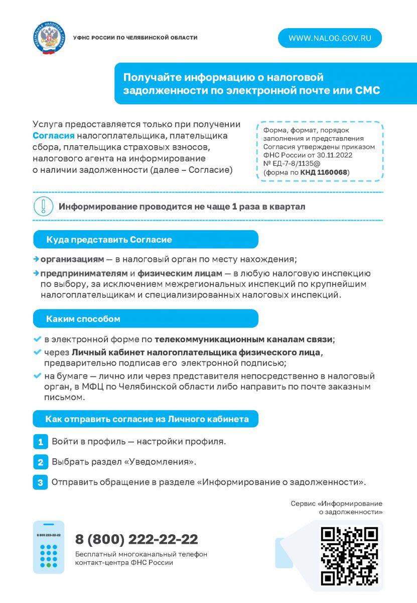 Получайте информацию о налоговой задолженности по электронной почте или СМС