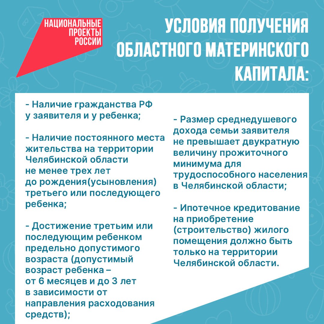Областной материнский капитал – одна из самых востребованных мер социальной поддержки среди многодетных семей. Помощь гражданам предоставляется в рамках национального проекта «Семья», сообщает пресс-служба министерства социальных отношений Челябинской области.