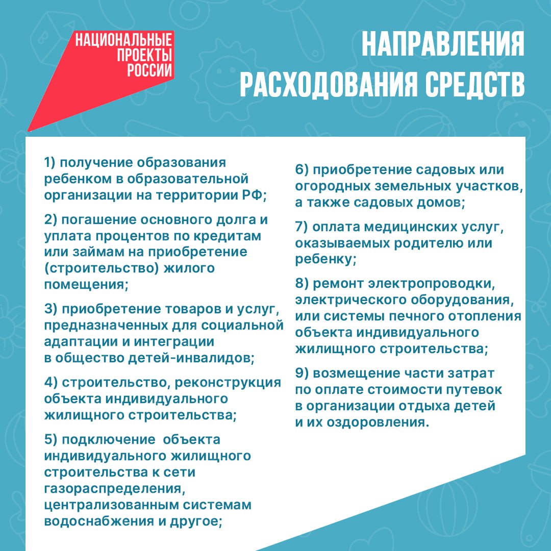 Предусмотрено 9 направлений, по которым могут использоваться средства областного материнского капитала: