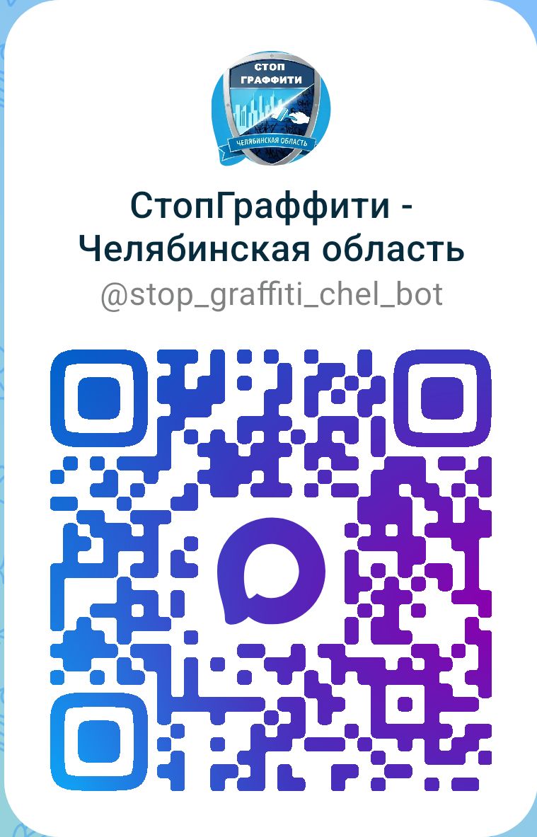 Для передачи информации необходимо через строку поиска найти соответствующее название бота (stop_graffiti_chel_bot) в мессенджере «МАХ», нажать start и далее пользоваться меню мессенджера, или перейти по предлагаемому qr-коду.