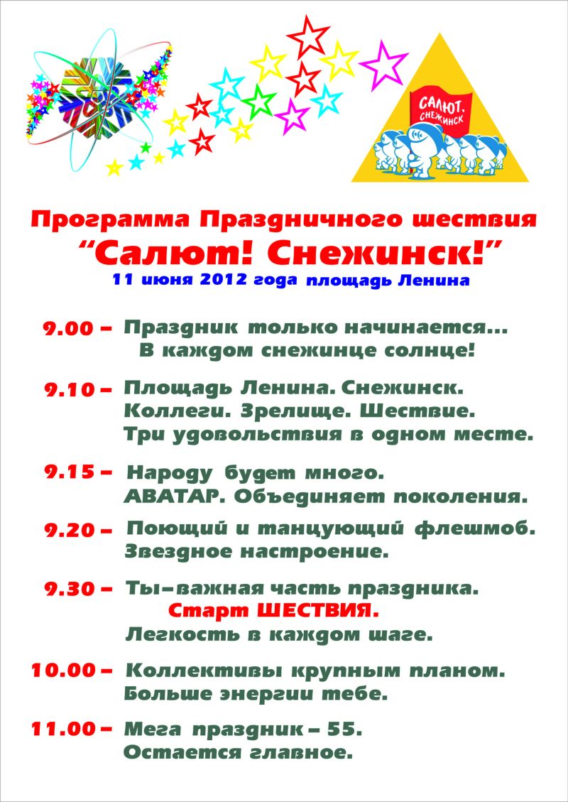 Праздничное шествие (большой формат) ФЛЕШ-МОБ ПОЛОЖЕНИЕ об организации и проведении крупномасштабных флеш-мобов (скачать) Музыкальное сопровождение (текст песни, аудио) График репетиций (скачать)