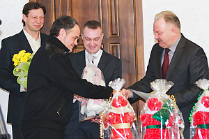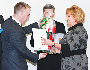 Глава администрации города Вадим Абакулов, его заместитель Дмитрий Востротин и начальник отдела по организации торговли, защите прав потребителей и работе с предпринимателями Владимир Карманов вручили победителям памятные призы и цветы и поблагодарили за праздничное настроение, подаренное снежинцам в новогодние дни.