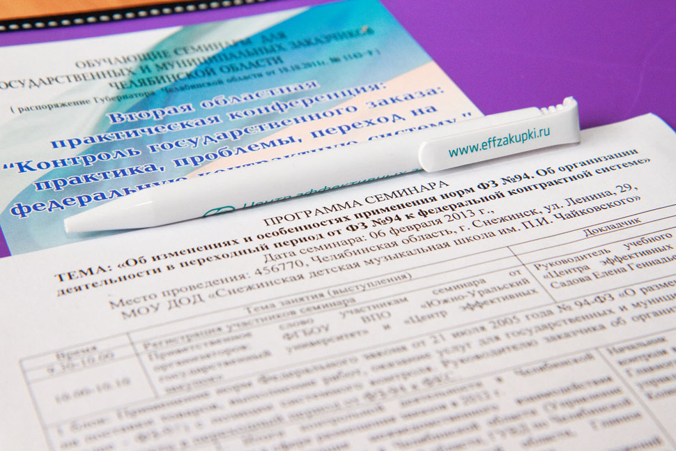 Вчера, 6 февраля, в детской музыкальной школе состоялся обучающий семинар по теме«Об изменениях и особенностях применения норм ФЗ-94. Об организации закупочной деятельности в переходный период от ФЗ-94 к федеральной контрактной системе», организованный ООО «Центр эффективных закупок» и ФГБОУ ВПО «Южно-Уральский государственный университет» при поддержке Главного контрольного управления Челябинской области.