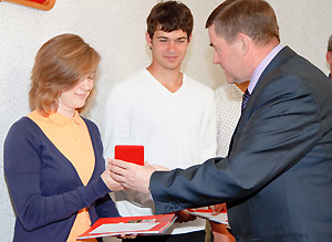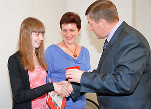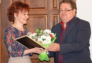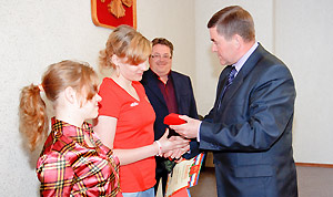 В торжественной обстановке Анатолий Тимошенков поздравил воспитателя детского сада № 30 Юлию Варлашову, занявшую третье место в областном конкурсе «Педагог года в дошкольном образовании».